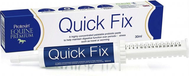 Quick Fix is a highly concentrated probiotic and prebiotic paste to rapidly re-establish the horses gut microbiota in times of stress or change, including travelling, worming and antibiotic treatment.